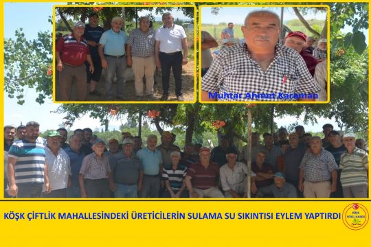 Köşk Çiftlik Mahallesinde sabah saatlerinde mahalle Muhtarı Ahmet Karaman ve beraberindeki Köy Halkı, DSİ bağlı olan sulama kanalından kendilerine yeterince, sulama suyu verilmediğini iddia ederek seslerini duyurmak için, Akçay Sahil Sulama Birliğinin Çiftlik’teki tesisinin önünde toplanarak, çalışanların su kapaklarının açmasını ve Umurluya doğru su verilmesinin engelledi.