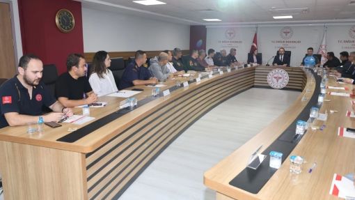 İl Sağlık Müdürlüğü Sağlık Hizmetleri Başkanlığı’na bağlı Afetlerde Sağlık Hizmetleri Birimi koordinasyonunda yapılan toplantı, İl Sağlık Müdürü Dr. Eser Şenkul’un başkanlığında gerçekleştirildi.