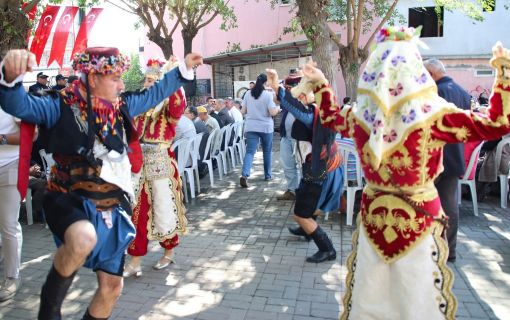 Aşure ve keşkek hayrı etkinliğinde halk oyunları gösterileriyle renkli görüntüler yaşanırken, Kuran-ı Kerim okunarak dualar edildi.