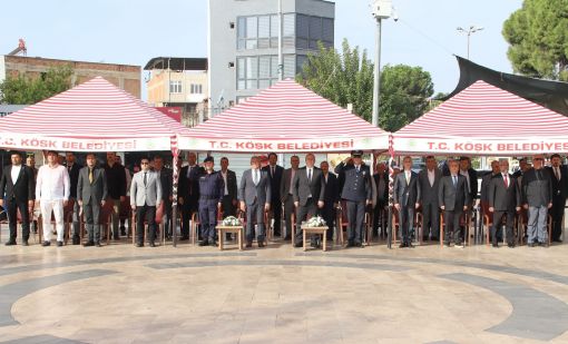 Köşk Kent Meydanında gerçekleşen törene Köşk Kaymakamı Hasan Taş, Köşk Belediye Başkanı Nuri Güler, Köşk İlçe Milli Eğitim Müdürü Selim KARATAŞ, KÖŞK İlçe Emniyet Amiri İsa Yılmaz, Köşk İlçe Jandarma Komutanlığına J. Üsteğmen Rüstem Gök, Köşk İlçe Sağlık Müdürü M.Fatih Göçmen, Köşk İlçe Tarım ve Orman Müdürü Veysel Ali Ünal, Köşk İlçe Malmüdürü Hetem Erkmen, Köşk İlçe Müftüsü Nuri İlkatmış, Köşk Atilla Koç Halk Kütüphanesi Müdürü Emre Durmaz, Köşk Ziraat Odası Başkanı Levent Güler, Mahalle Muhtarları ve Köşk halkı katıldı.