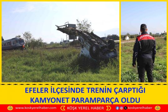 EFELER İLÇESİNDE TRENİN ÇARPTIĞI KAMYONET PARAMPARÇA OLDU