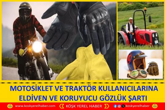 MOTOSİKLET VE TRAKTÖR KULLANICILARINA ELDİVEN VE KORUYUCU GÖZLÜK ŞARTI