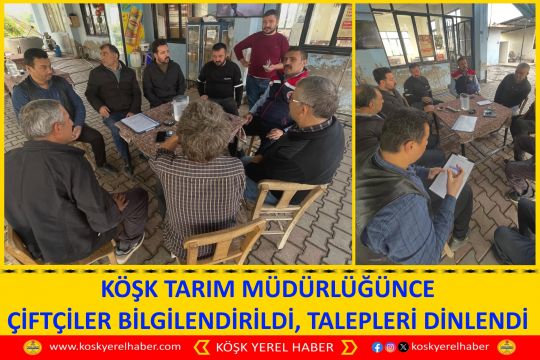 Üreticilerin katılımı ve ilgisinden memnuniyet duyduklarını belirten Köşk İlçe Tarım ve Orman Müdürlüğü, bölge tarımının gelişmesi adına bu tür eğitim ve bilgilendirme toplantılarının devam edeceğini bildirdi. Yapılan açıklamada "Bu hafta Cuma Buluşmaları kapsamında çiftçi eğitim toplantılarımızı ilçemiz Baklaköy, Kızılcayer ve Ketenyeri mahallelerimizde gerçekleştirdik. Karşılaşılan güçlükler, sıkıntılar ve tavsiyeleri ile ilgili çözümler için bilgi alışverişinde bulunuldu.