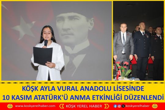 Köşk İlçe Milli Eğitim Müdürlüğü tarafından 10 Kasım Atatürk'ü Anma Günü Etkinlikleri kapsamında Ayla Vural Anadolu Lisesi Konferans Salonu’nda, anlamlı ve bir anma programı gerçekleştirildi.