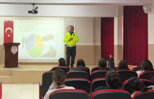 Seminerde öğrenciler, trafikte dikkat edilmesi gereken kurallar, yaya ve sürücü sorumlulukları hakkında önemli bilgiler edindi.