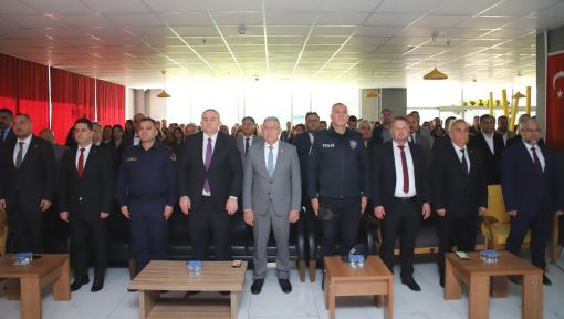 Öğretmenler günü kutlama etkinliğinde saygı duruşu ve İstiklal Marşı’nın okunmasının ardından İlçe Milli Eğitim Müdürü Selim KARATAŞ, günün anlam ve önemini belirten bir konuşma yaptı.