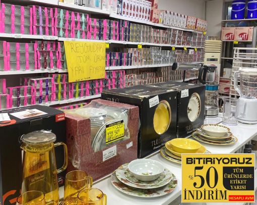 Merkez ve şubelerinde geniş züccaciye koleksiyonunda mutfaktan sofraya, yemek hazırlamadan sunuma birçok ürün uygun fiyatlarla müşterilerine sunan HESAPLI AVM düzenlediği etiketin yarısı kampanyalarıyla hep ilgi ve alışverişin aranır adresi olmaya devam ediyor.