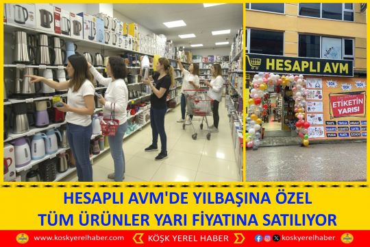 Aydın, Köşk ve İncirliova ilçelerinde 4 şubesi ile vatandaşlara kaliteli ve güleryüzlü hizmet sunan HESAPLI AVM etiketin yarı fiyatına satış kampanyalarına devam ediyor.