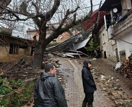 Şiddetli rüzgar nedeniyle bir binanın çatısından kopan parçalar yola ve bahçelere savrulurken, bazı yapılarda duvarları yıkıldı. Yaşanan olaylarda şans eseri can kaybı ya da yaralanma yaşanmazken, mahallede maddi hasar meydana geldi.