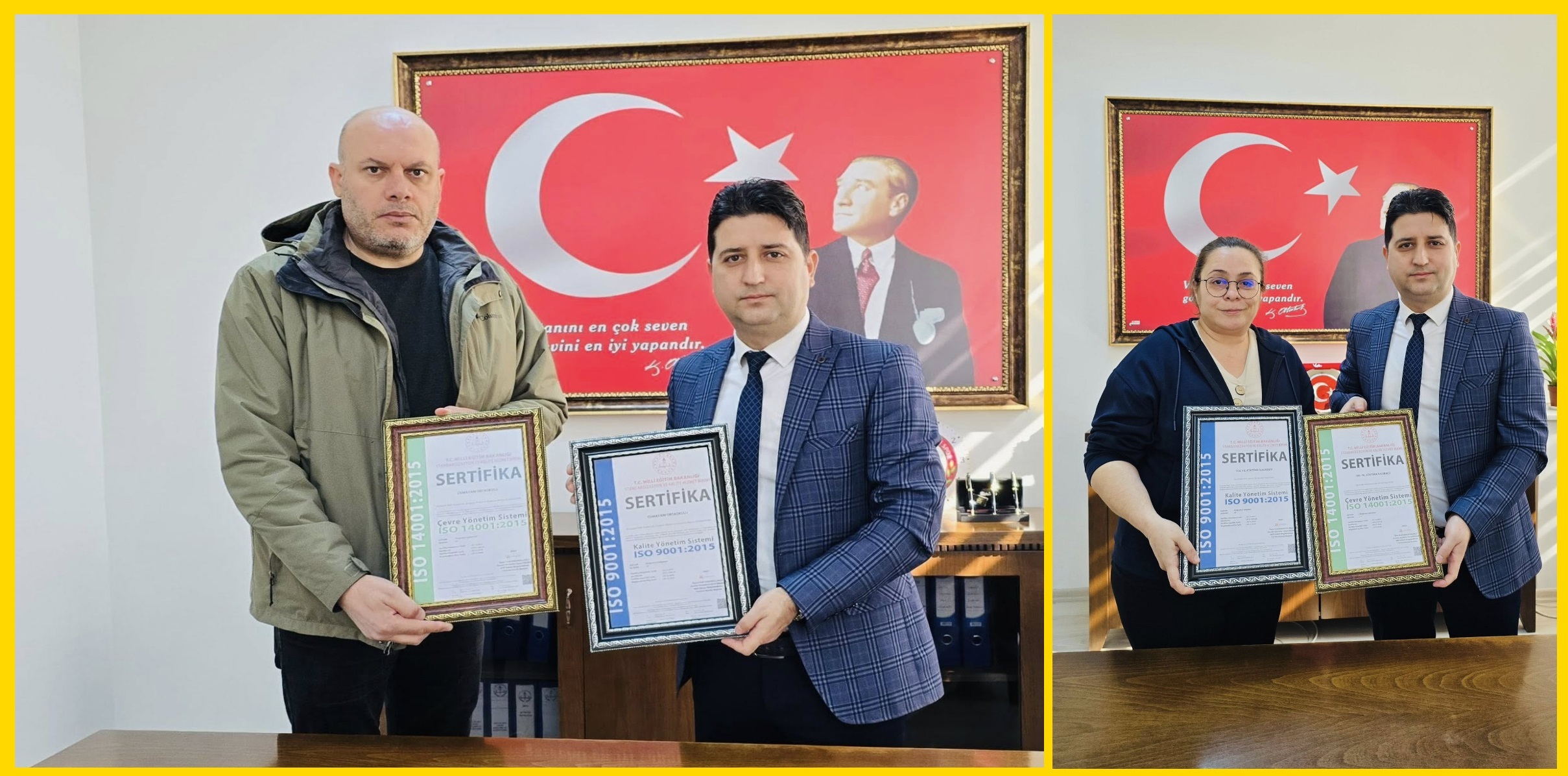 Köşk Cumayanı Ortaokulu ve 100.Yıl Atatürk İlkokulu Kalite Yönetim Sistemi ve Çevre Yönetim Sistemi (ISO 9001:2015 ve ISO 14001:2015) Sertifikaları aldılar.