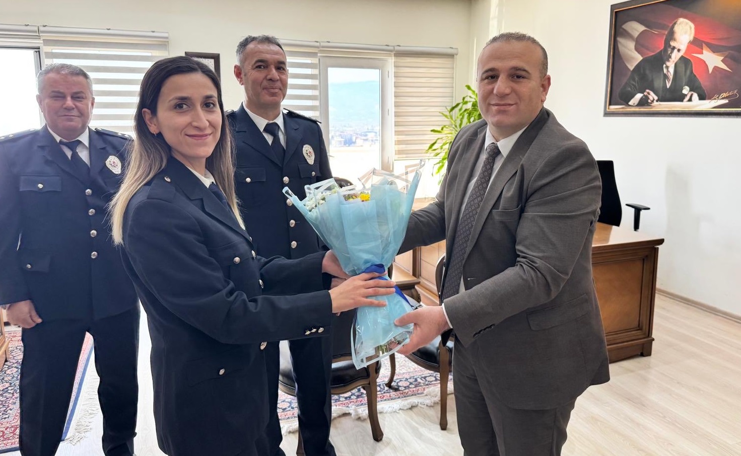 Köşk ve Sultanhisar emniyet amirlikleri polis personelleri Kayamakam Taş'a ziyarette kutlama çiçeği sundular.