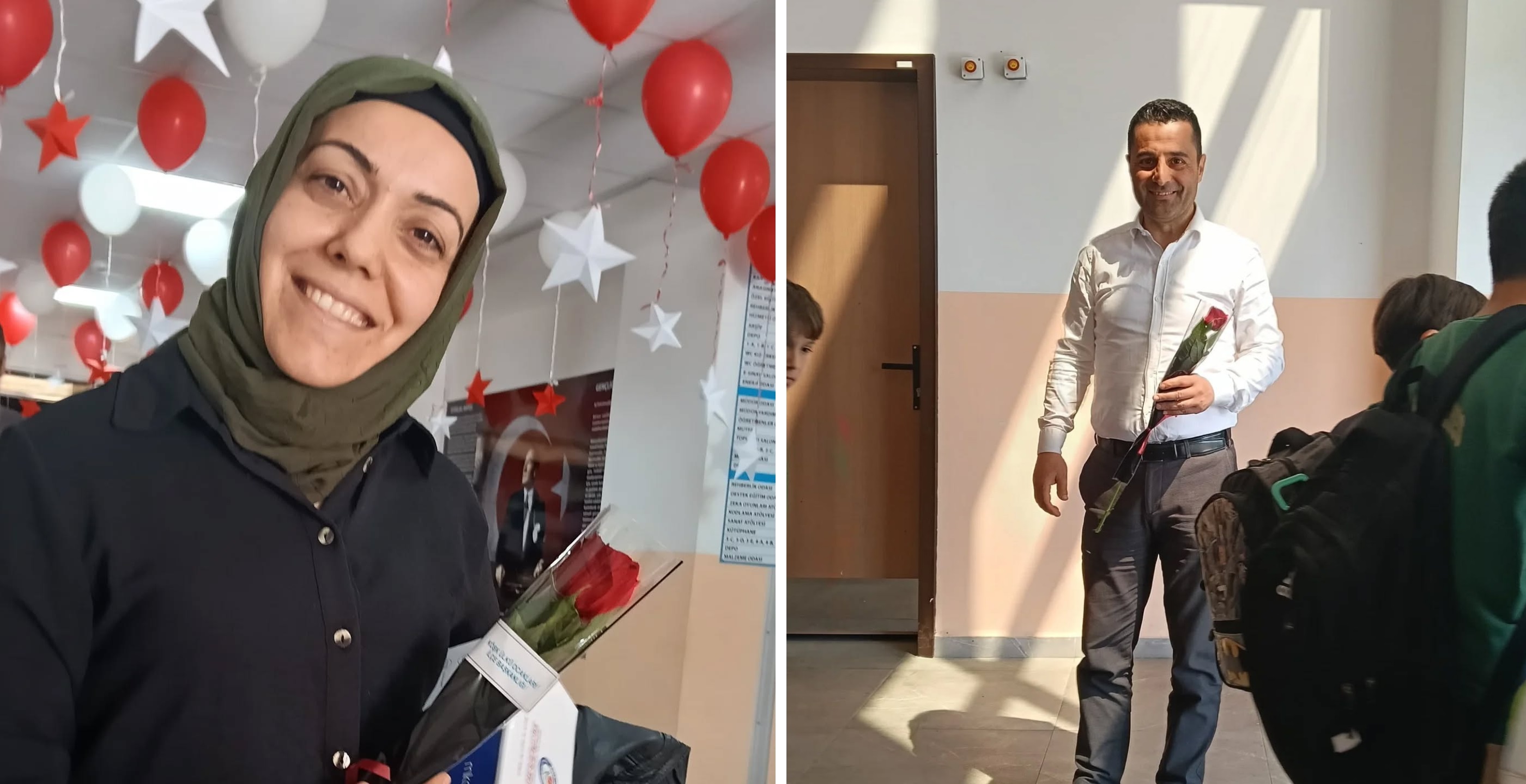 "Eğitim camiamıza yönelik her türlü şiddetin karşısında olduğumuzu belirtmek ve öğretmenlerimize moral desteği vermek amacıyla kendilerine çiçek takdiminde bulunduk.