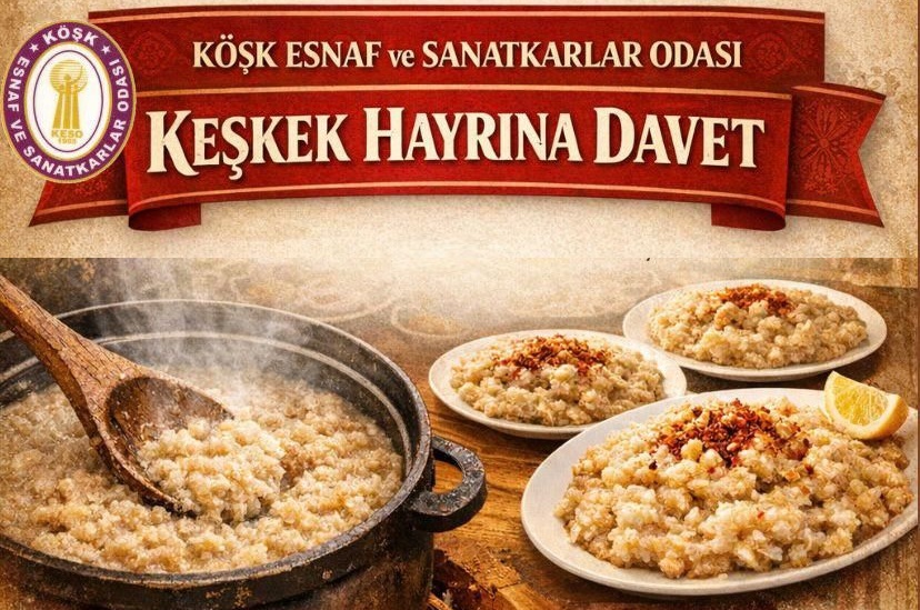 Köşk sanayisinde 23 Nisan 2026 tarihinde düzenlecek olan "Keşkek Hayrı" için Köşk Esnaf ve Sanatkarlar Odası Başkanı Ümit Açıkgöz yaptığı davet duyurusunda; "Birlik ve beraberliğimizi pekiştirmek amacıyla düzenleyeceğimiz geleneksel keşkek hayrımıza tüm esnafımız ve halkımız davetlidir. Paylaşmanın, dayanışmanın ve bereketin buluştuğu bu anlamlı günde sizleri de aramızda görmekten mutluluk duyarız." sözlerine yer verdi.